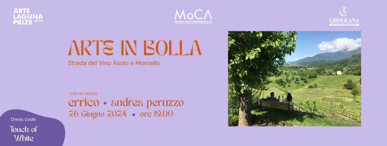 Il primo appuntamento Arte in Bolla verrà ospitato dalla Cantina Ghisolana, Agriturismo al Capitello e avrà come protagonisti Errico (Riccardo Lazzarini) e Andrea Simone Peruzzo, finalisti di Arte Laguna Prize, che si racconteranno durante la serata esponendo in esclusiva le loro opere.